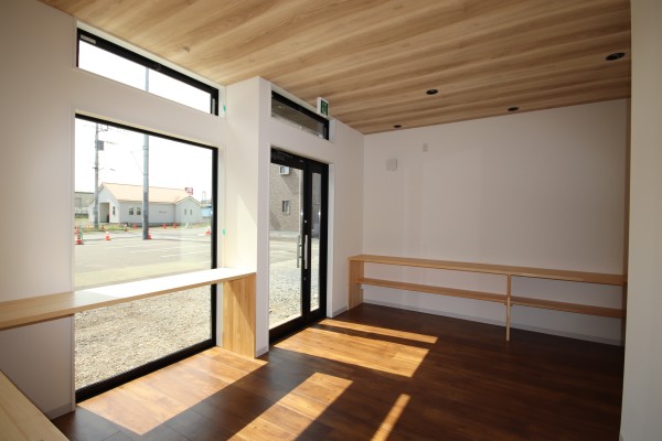 店内は、食事を提供することを考慮して白を基調とし、アクセントとして一部木目を配した清潔感のある空間を表現した。